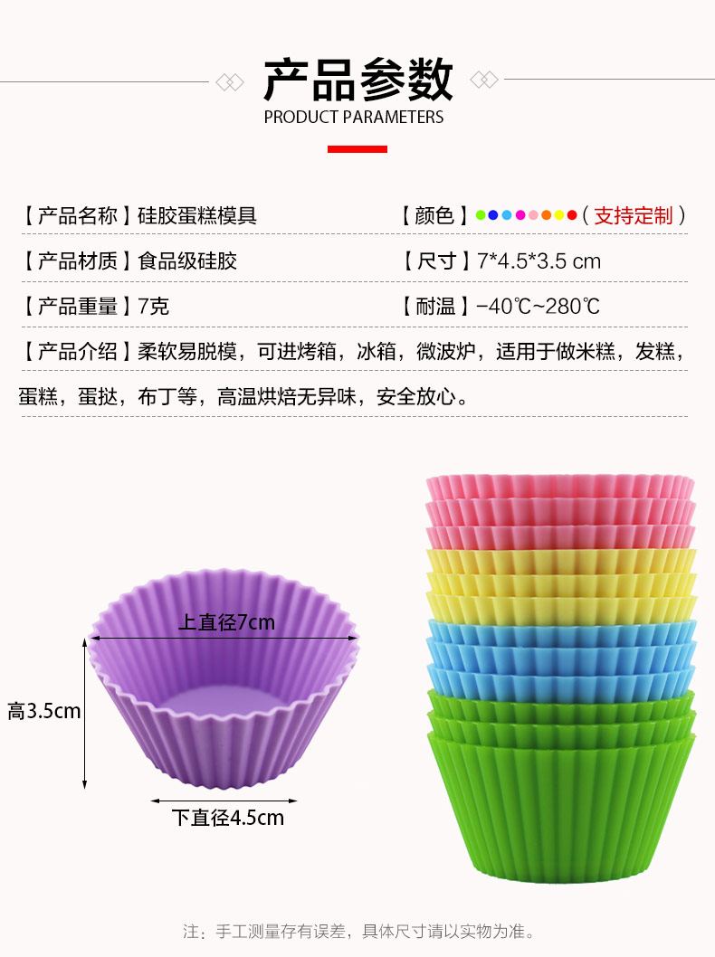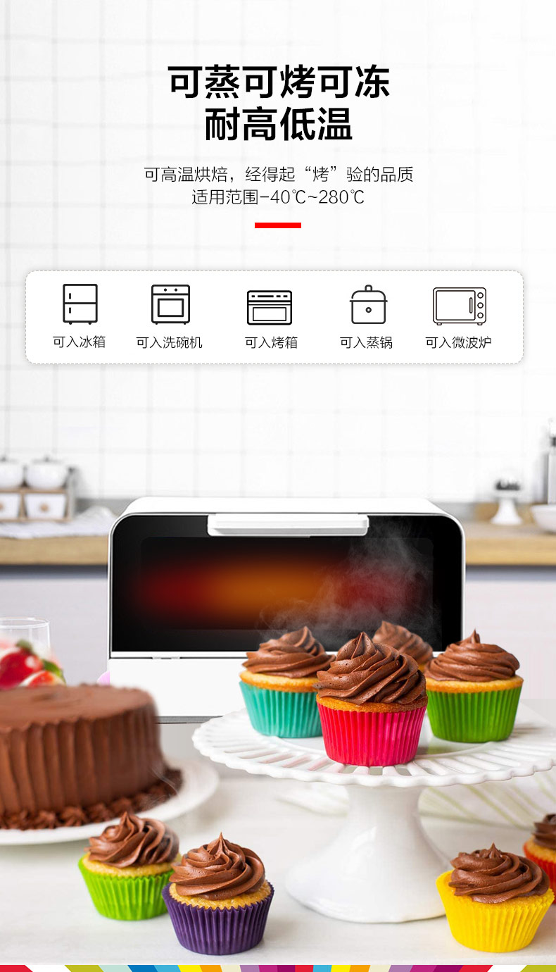 【產(chǎn)品介紹】柔軟易脫模,可進(jìn)烤箱,冰箱,微波爐,適用于做米糕,發(fā)糕,蛋糕,蛋撻,布丁等,高溫烘焙無異味,安全放心。
