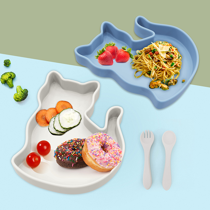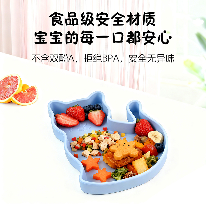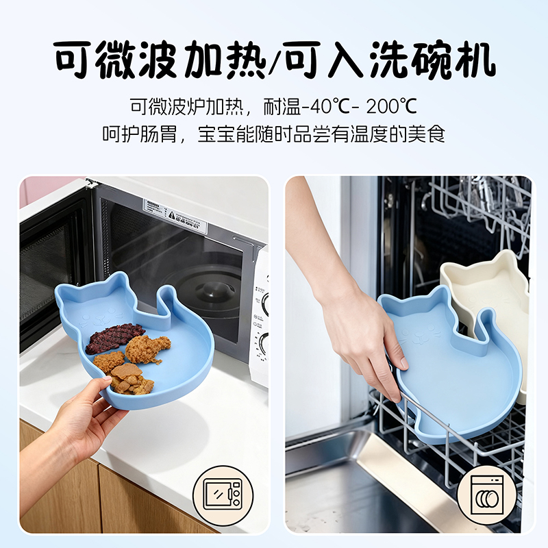硅膠卡通小貓吸盤(pán)餐盤(pán)